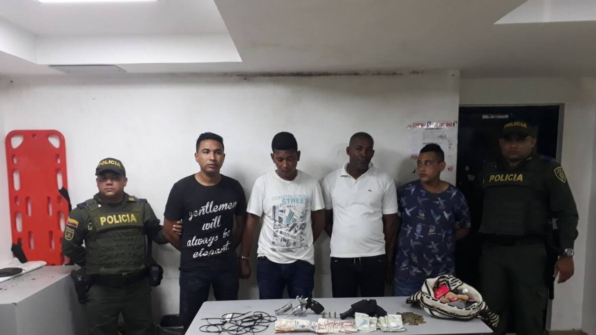 Los capturados identificados como: Sixto Teherán Zúñiga de 43 años, Jeison Real Bravo de 30 años, Jeison Flórez Rodriguez de 25 años, y Brandon David Contreras López de 18 años, fueron dejados a disposición de la Fiscalía por los delitos de hurto y porte ilegal de armas de fuego.
