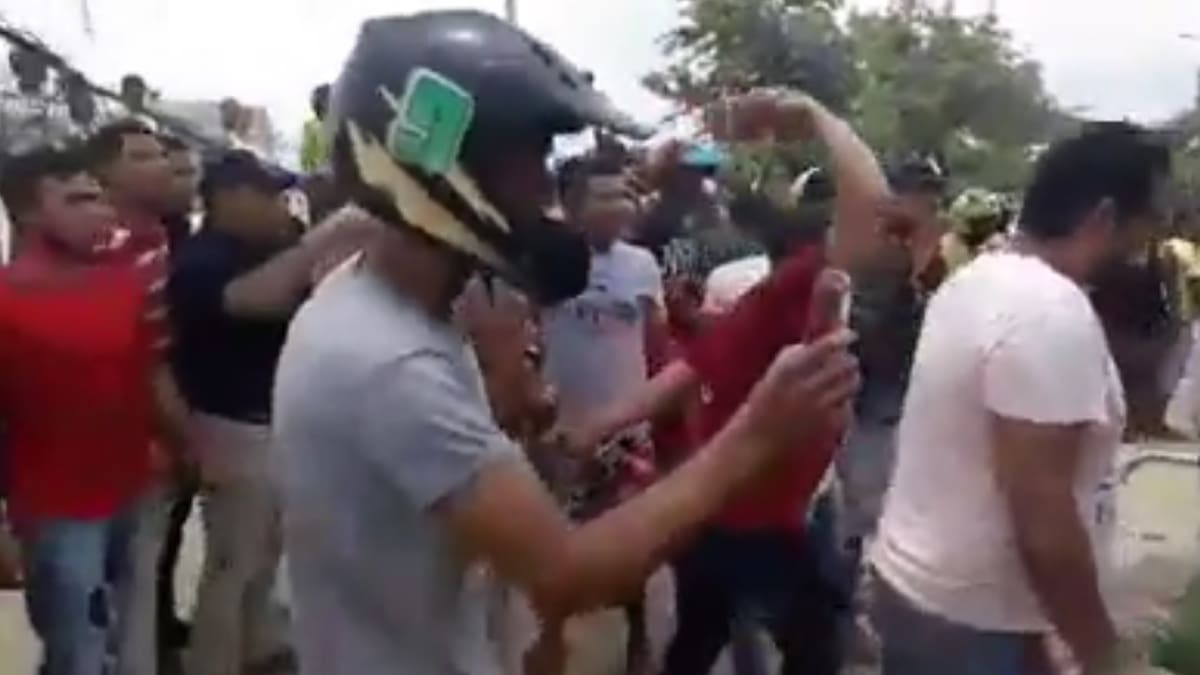 En las imágenes aparecen dos personas con palo en mano y le pegan al individuo ante la mirada de agentes de la Policía que llamaron en ese momento a la calma. Incluso, un miembro de la Sijín alcanzó a hacer un disparo con su arma de dotación y lo que hizo fue avivar la ira de las personas.