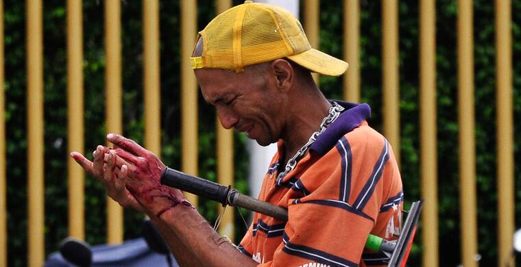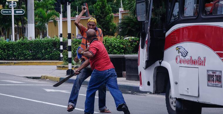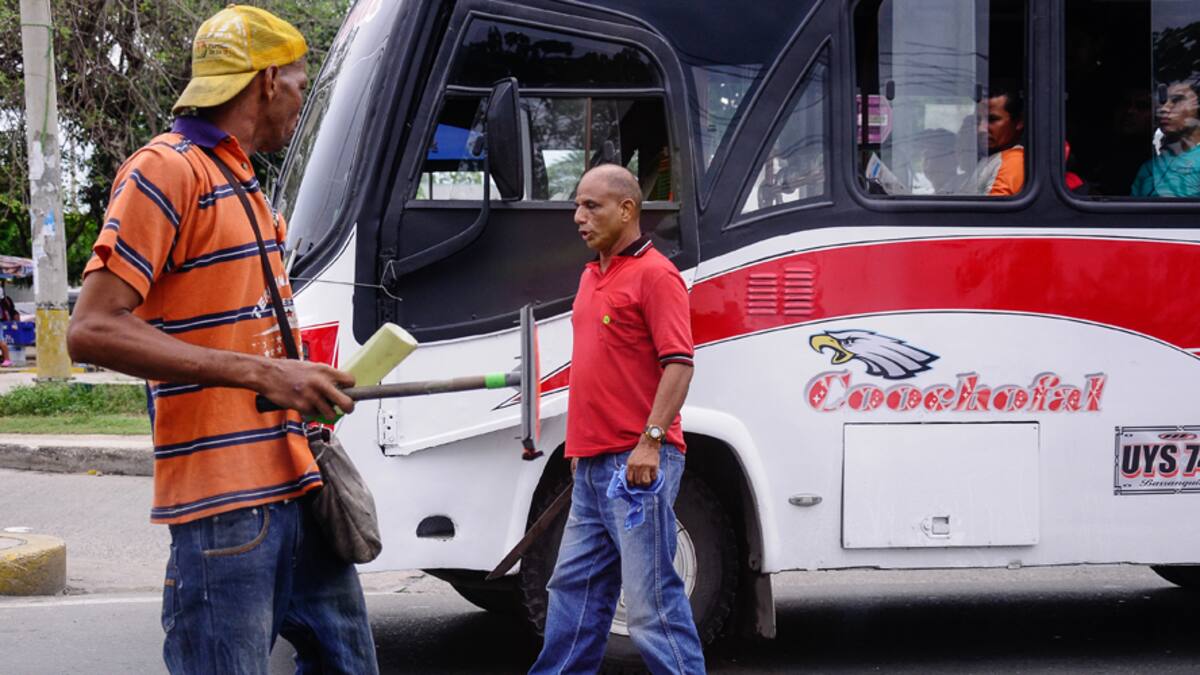Las imágenes captadas por el reportero gráfico Jesús Rico dan cuenta del enfrentamiento entre un conductor de bus de la empresa Coochofal y un limpiador de vidrios, en la calle 30 con carrera 19, en Soledad, luego de que el segundo intentara irse gratis en el automotor. El limpiador de vidrios que se defendía con su elemento de labores, sufrió una cortada en la mano izquierda, por lo que se trasladó hasta el Hospital Juan Domínguez Romero. La Policía atendió el caso.