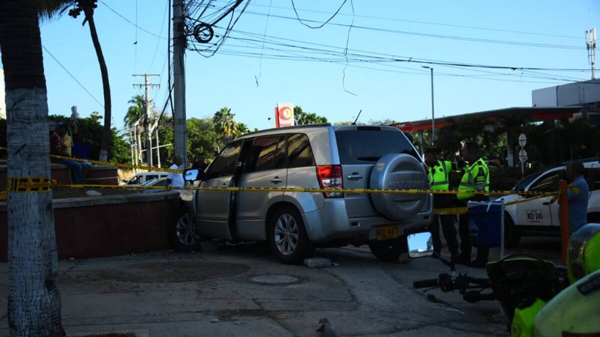 El conductor de un vehículo marca Suzuki, tipo campero, de placa HXL-467 rodaba sobre la carrera y cuando intento tomar la curva para cruzar hacia la calle, no pudo hacerlo y lo que hizo fue seguir derecho encontrando uno de los muros del edificio Portal del Prado.