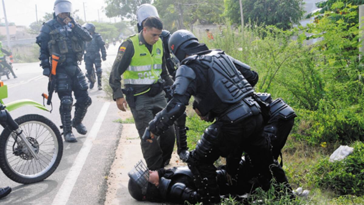Herido a bala. En el lugar todo era caos y confusión. Las piedras ‘volaban’ en todas las direcciones. De repente apareció una camioneta blanca, desde donde un sujeto disparó contra un policía del Esmad, quien fue impactado en el abdomen. El uniformado herido fue identificado como Iván Darío Villarreal Sánchez, quien permanece internado en la Clínica de la Policía. Su estado de salud es estable. Los agentes quemados con agua caliente también recibieron atención médica en el referido centro asistencial.
