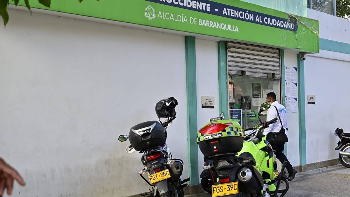 Detectives de la Sijín y patrulleros de la Policía Metropolitana de Barranquilla inspeccionaron en la tarde de este lunes 9 de septiembre la sede de la Alcaldía Menor de la localidad Suroccidente, ubicada en la carrera 21B con calle 63, tras un asalto perpetrado por dos sujetos armados.