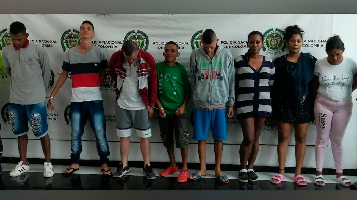 Los capturados fueron identificados como Dair José Paterson Vásquez, alias Alambrito; Darío David Ospina Acuña, alias Lobito; Lorena Patricia Fuentes Páez, Angie Paola Cortez Benítez, Jorge Luis Zambrano Blanco, alias Mono Cuqui; Francisca Piterson Vásquez, alias Mai Mai; Brayan Conde Pérez, alias Jorobado y Gabriel Enrique Amarís Villamil, alias el Burro.