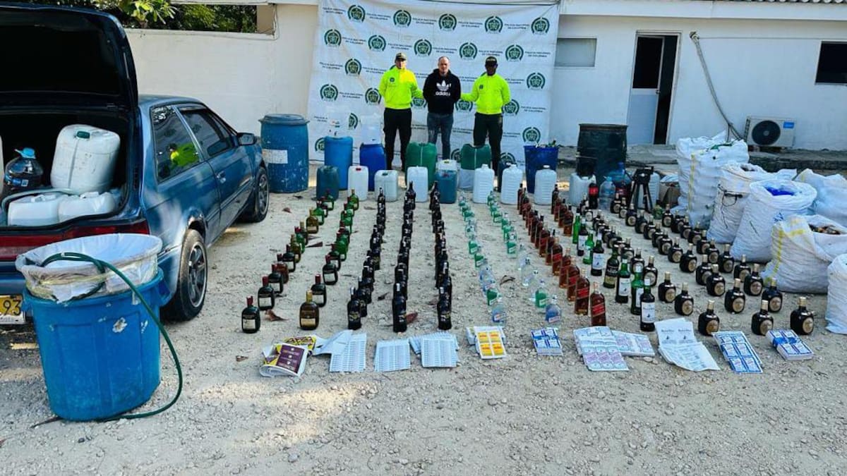 Además, se incautaron 23 pimpinas plásticas y 3 tanques conteniendo licor adulterado, junto con 7.362 insumos secos, incluyendo tapas, cajas vacías, botones laterales, etiquetas y estampillas de diferentes marcas. El individuo operaba con un vehículo, el cual también fue confiscado en el operativo.