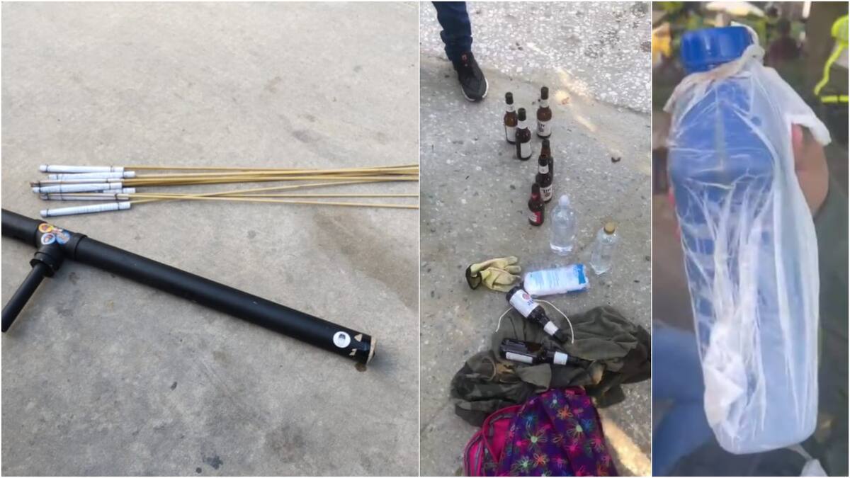 Asimismo, Cabrera aseguró que fueron incautados 'tatucos artesanales, botellas de vidrio, aserrín, gasolina, aceite, algodón, metralla, cauchera, canicas, leche, guantes, gafas industriales de protección y otros elementos que son usados para causar daños'.