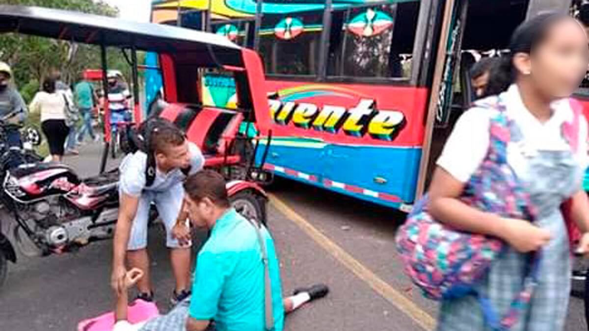 Un accidente de tránsito, protagonizado por un motocarro (YOQ-41C) y un bus de servicio público (STS-218), en la vía Oriental dejó a dos estudiantes lesionadas.