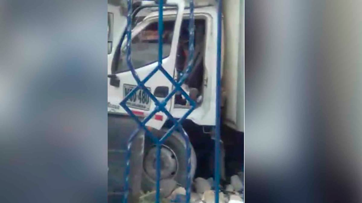 En un video que testigos hicieron llegar a este medio a través de la línea Wasapea EL HERALDO se logra observar cómo el furgón quedó dentro del colegio, y los daños que este causó.