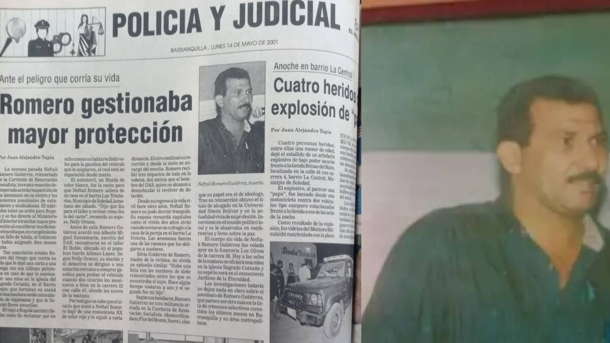 En caso de que lo asesinaran, Neftalí Romero Gutiérrez había dejado unas peticiones a sus seres queridos a través de una carta que le confió a una vieja amiga: una misa en la Iglesia del Sagrado Corazón del Barrio Abajo, que forraran un su ataúd con una bandera verde como símbolo de esperanza y que le llevaran flores amarillas a la velación. Y así se hizo, pues el 12 de mayo de 2001, solo días después de haberle entregado la carta a su conocida, Romero Gutiérrez terminó acribillado junto a su escolta del DAS, Alberto Miguel Santamaría Peña, en cercanías de un taller de mecánica automotriz del barrio Alfonso López, en el sur de Barranquilla. El asesinato de este abogado de ideas de izquierda, exmiembro del M-19 y de la Corriente de Renovación Socialista, CRS, firmante del acuerdo de paz con el gobierno del presidente César Gaviria en abril de 1994, hizo parte del oscuro capítulo de las Autodefensas Unidas de Colombia en el departamento del Atlántico, cuando a comienzos del nuevo milenio pretendían el control de absolutamente todo como plan de expansión, acababan con el que fuera un obstáculo y lejos estaba aún la desmovilización.