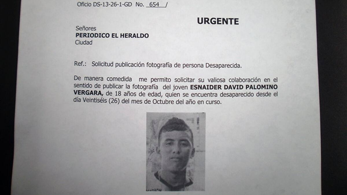 Las alarmas se encendieron luego de que familiares de Esnáider David Palomino Vergara, de 18 años, se acercaron a las oficinas del Cuerpo Técnico de Investigación (CTI), seccional Atlántico, y aseguraron que no tienen rastro suyo.