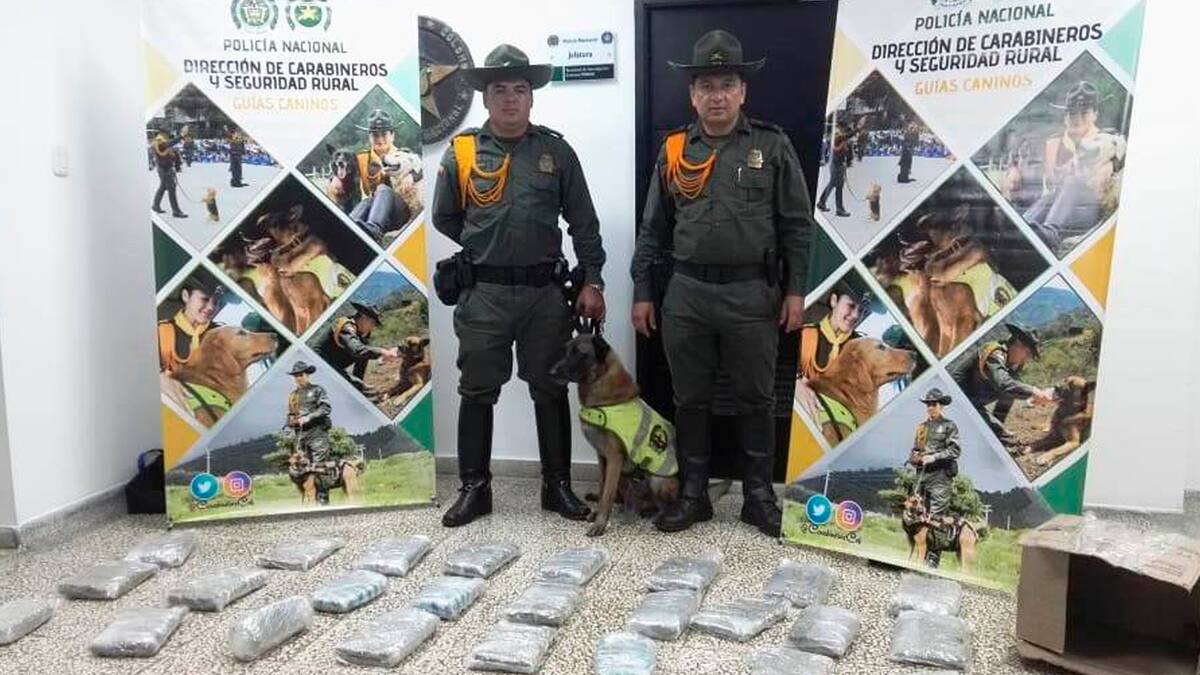La incautación se logra gracias a Rambo, canino especializado en detención de narcóticos, quien logra olfatear el estupefaciente, que venía distribuido en 25 paquetes, durante actividades de registro que se realizan en diferentes puntos de ingreso de mercancía de la ciudad por parte del grupo de carabineros.