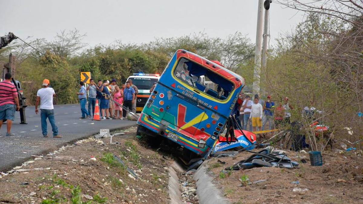 Cuando transitaban a la altura del kilómetro 53 en jurisdicción de Palmar de Varela, el conductor de un bus intermunicipal perdió el control del volante al tomar una curva y terminó saliéndose de la vía.