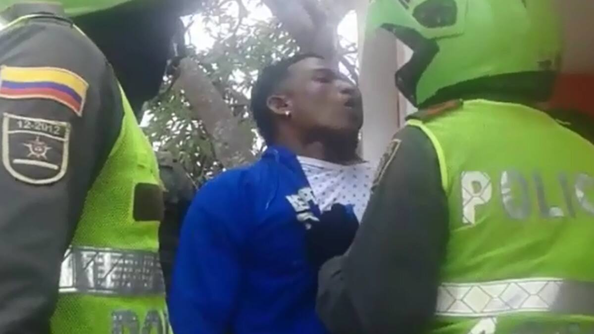 Un video muestra cuando uno de los uniformados tiene cogido por el suéter a Zambrano Barceló, mientras que este le grita improperios al policía.
