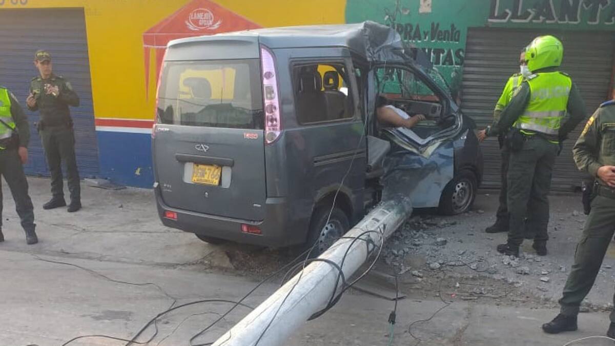 Para ese momento, la Policía de Tránsito de la Metropolitana de Barranquilla se encontraba en el lugar intentando descifrar como extraer el cadáver que se encontraba en la cabina de una miniván que minutos antes chocó contra un poste de alumbrado público.