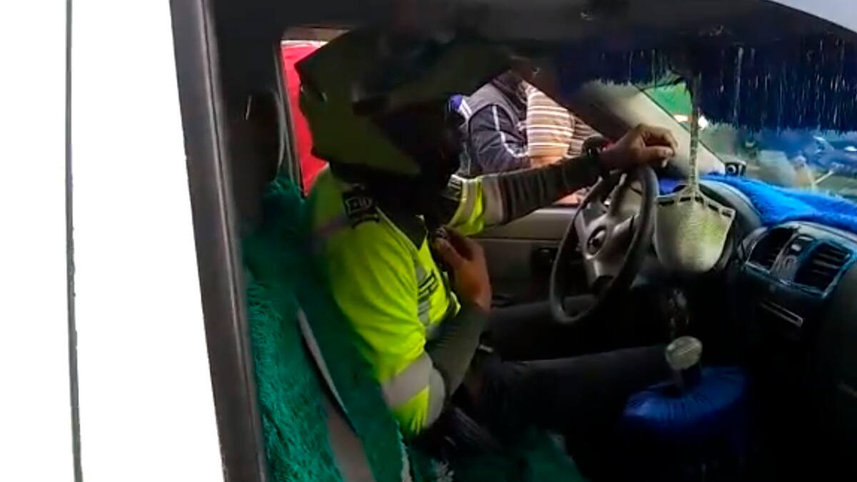 Según conoció EL HERALDO a través de videos aficionados y declaraciones de testigos, todo empezó cuando una patrulla de tránsito detuvo la Dacia de placas UYT 528 alrededor de las 7:00 de la mañana, por funcionar como medio de transporte ilegal.