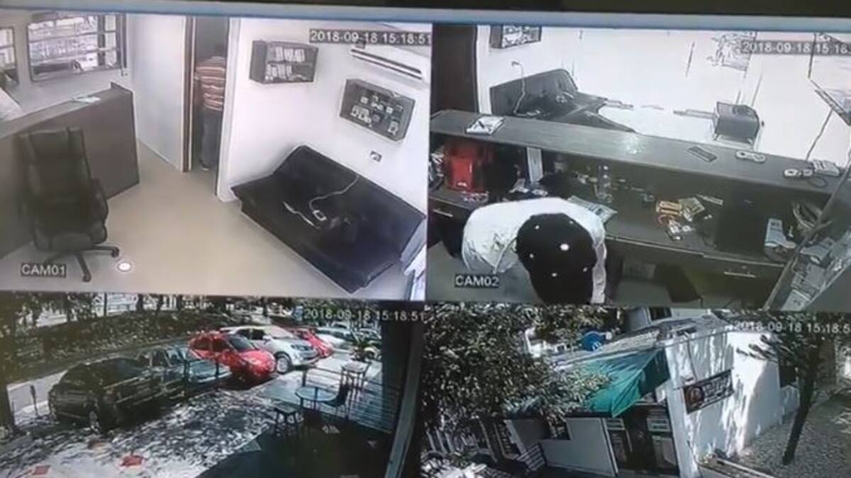 Segundos después, un cómplice ingresa al lugar. Este empieza a despojar de sus pertenencias a las víctimas y luego los traslada a un cuarto, mientras el otro delincuente llena un maletín con la mercancía que estaba exhibida.
