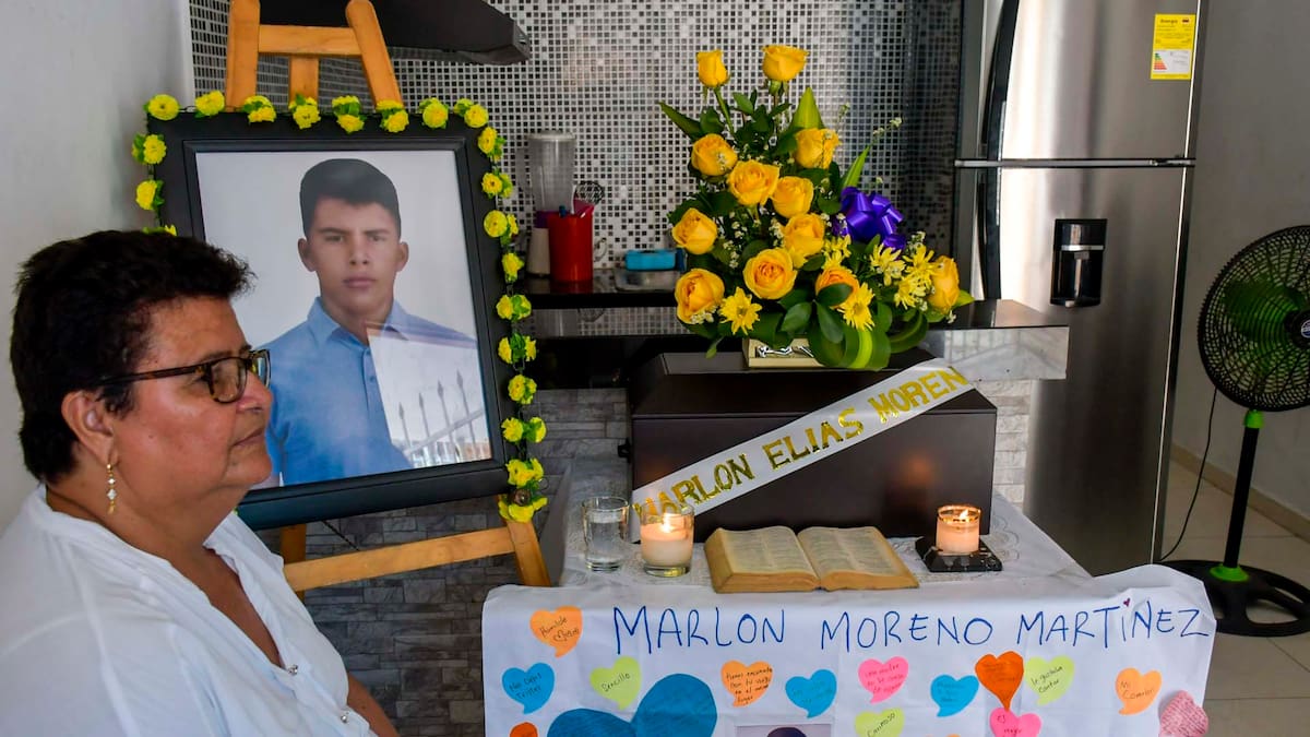 Este miércoles, el cofre con los restos de Marlon Moreno llegó a Barranquilla y en la sala de su casa, ubicada en Ciudadela Metropolitana (Soledad), familiares y vecinos lo velaban.