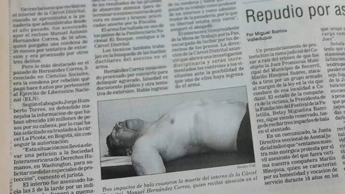 El 28 de enero de 2003 este medio publicó la noticia: ‘Asesinado recluso en la Distrital’, la cual informó sobre el homicidio del líder de izquierda.