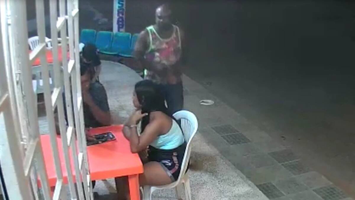 Un hombre se ve caminando hacia una mujer y al llegar a su lado la agrede jalándole el cabello y golpeándola en la cara.