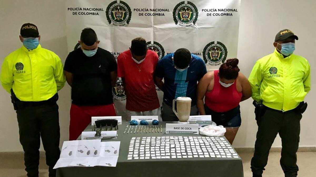 Varios meses de investigación, tres allanamientos, cuatro capturas, la incautación de 500 dosis de estupefacientes, una granada de fragmentación, un proveedor para fusil con 15 cartuchos Calibre 5.56 y 15 panfletos amenazantes. Esos fueron los resultados que la Policía del Atlántico reportó tras comunicar la detención de cuatro supuestos miembros del grupo delincuencial ‘los Costeños’, en la mañana de este martes.