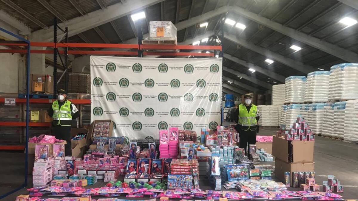 'Estos elementos que se pretendían comercializar en la próxima temporada decembrina fueron dejados a disposición de la Dirección de Impuestos y Aduanas Nacionales (DIAN), para definir su situación jurídica', indicó la Policía.