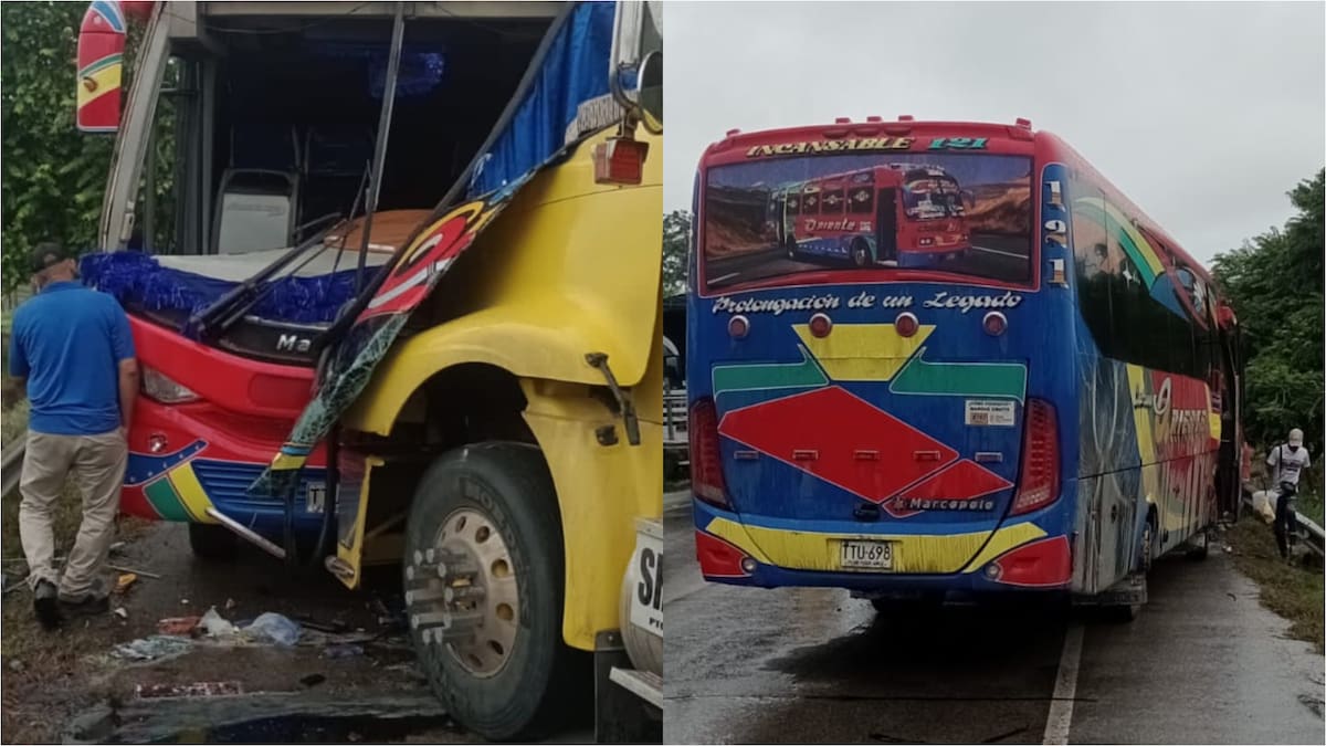 Según lo manifestado por el conductor del bus este transportaba 15 pasajeros con destino a Barranquilla cuando la tractomula invadió su carril, en un punto donde había una “paleta de pare y siga”, y chocó de frente con la carrocería de su vehículo.