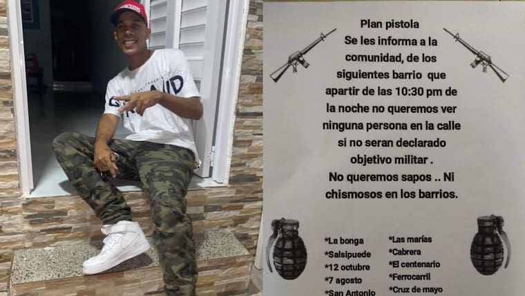 “Se les informa a la comunidad de los siguientes barrios que a partir de las 10:30 p. m. de la noche no queremos ver ninguna persona en la calle si no serán declarado objetivo militar. No queremos sapos, ni chismosos en los barrios”, se leyó en el impreso suministrado por la comunidad.