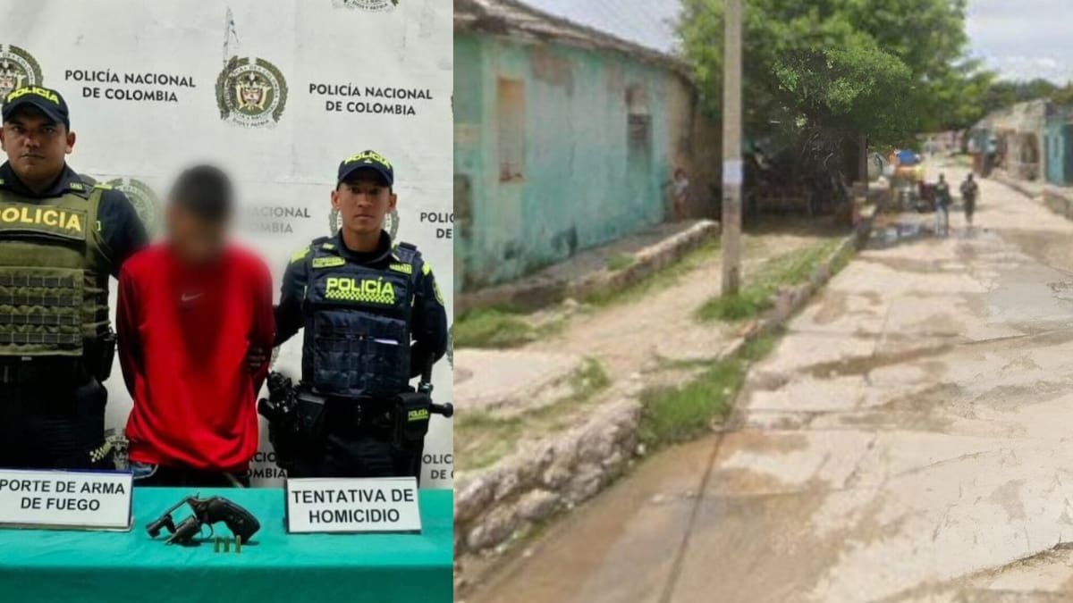 Tras escuchar las detonaciones por arma de fuego, patrullas de la Policía que se encontraban cerca del lugar reaccionaron de inmediato y desplegaron un operativo en la zona, lo que permitió ubicar y capturar en flagrancia a Emanuel José Cervantes Gómez, de 18 años, conocido con el alias de El Mello.