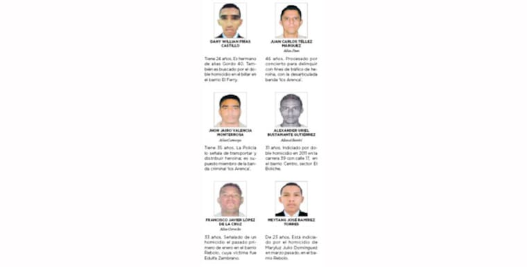 La Policía Metropolitana de Barranquilla detalló los nombres y los alias de los individuos más buscados, incluidos en un nuevo cartel. (Haga clic para ver nuevo cartel)