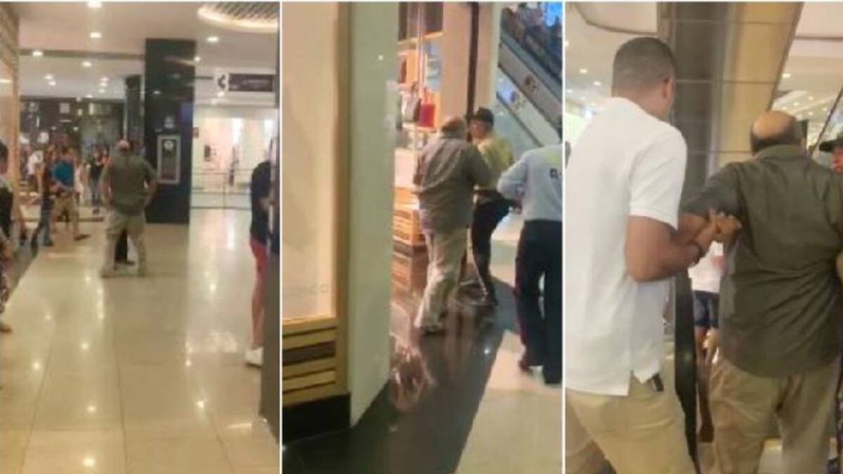 En redes sociales empezó a circular un video de un hombre que caminaba afanosamente en un centro comercial mientras era detenido por un guardia de seguridad. Se observa al hombre con actitud ofuscada y tratando de acomodar su pantalón que se cae mientras camina; durante el transcurso del video un guardia le grita a otro no lo dejes ir. 'Quieto ahí, quieto ahí', dice uno de los guardias de seguridad del establecimiento comercial.