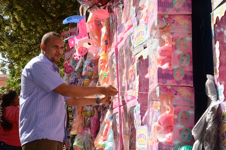 El pastor mira unos segundos el comercio en el Paseo Bolívar. Una señora camina apresurada con su pequeña hija, evitando que se encariñe de alguna muñeca; un vendedor negocia unos camiones de plástico y el regulador vial del sector hace avanzar el mermado flujo vehicular.