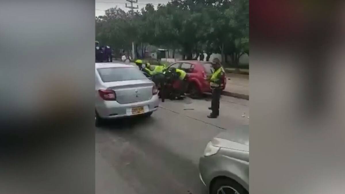 En video quedó registrado un presunto abuso policial, en un procedimiento de tránsito registrado en la carrera 64 con calle 85, en cercanías del CAI de La Electrificadora. Las imágenes muestran a un joven motociclista vestido de negro tendido en el suelo, forcejeando con dos policías, quien se resiste a ser esposado mientras grita.