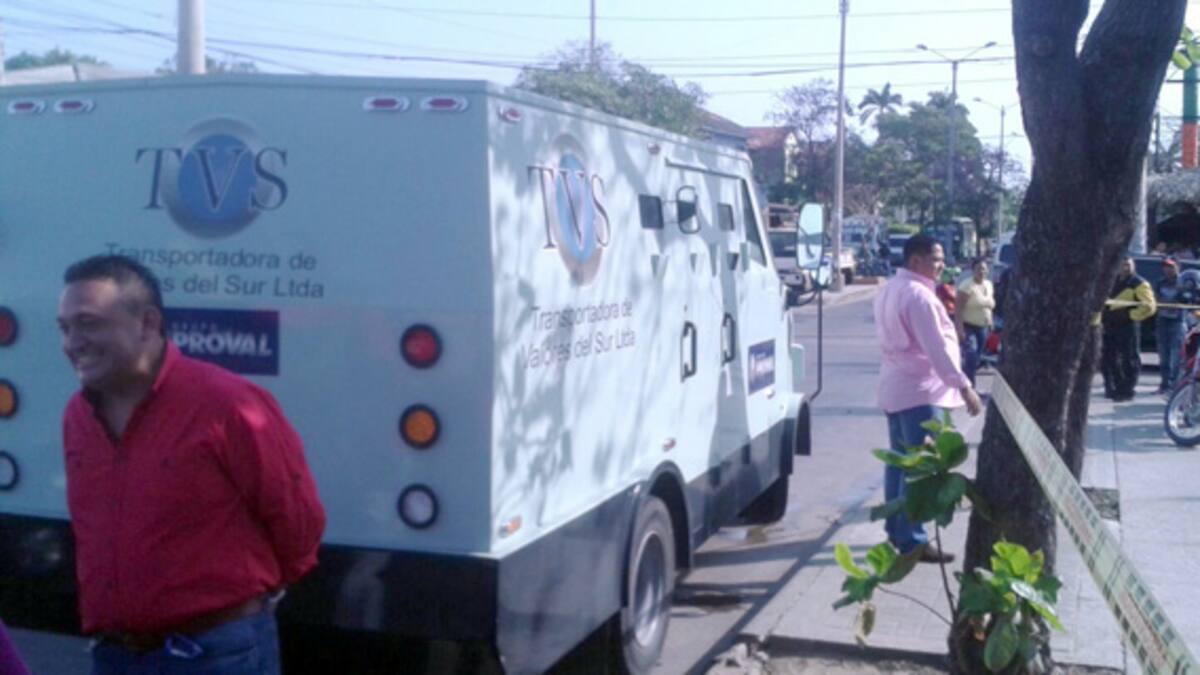 Testigos del atraco aseguran que cuatro sujetos que se encontraban al interior de la Olímpica atacaron a Jiménez y uno de ellos 'salió con algo en la mano', lo que sería una de las tulas de dinero del empleado de la empresa de valores.