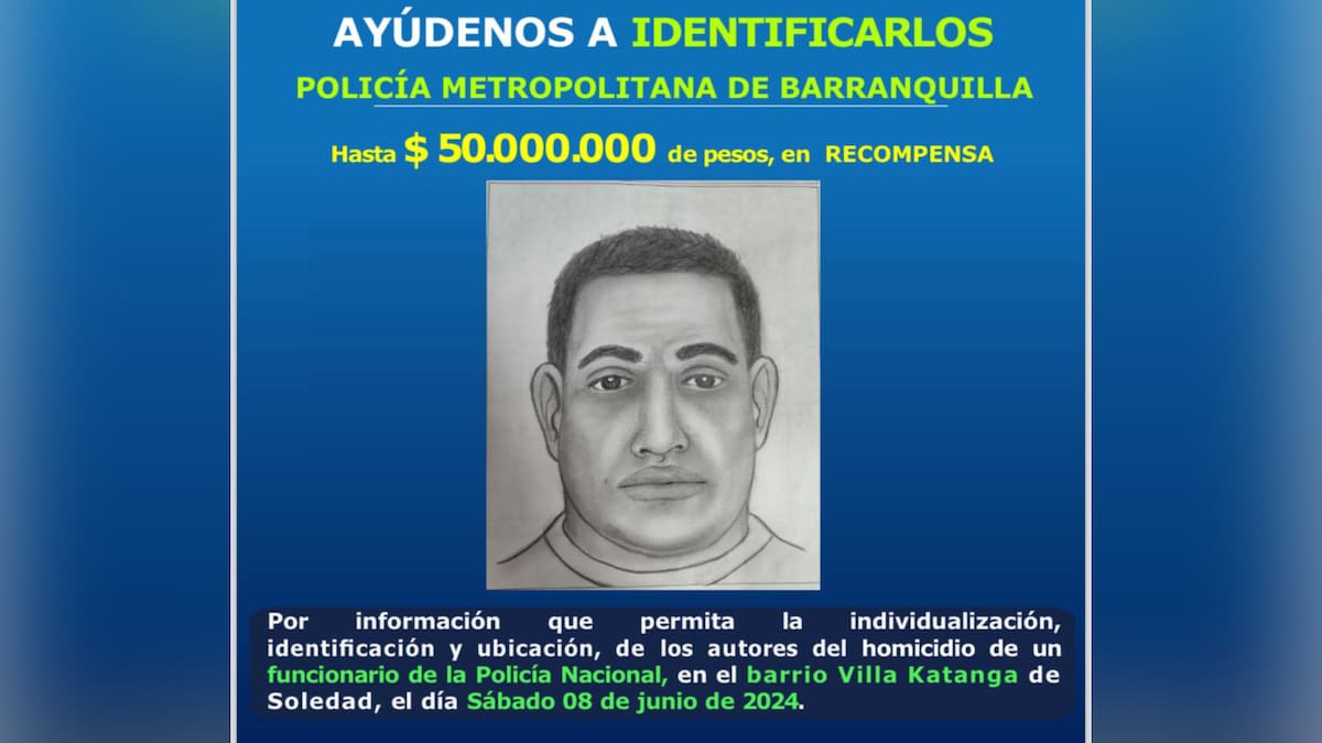 'Por información que permita la individualización, identificación y ubicación de los autores del homicidio de un funcionario de la Policía Nacional en el barrio Villa Katanga, de Soledad', puntualiza la institución en el cartel publicado.