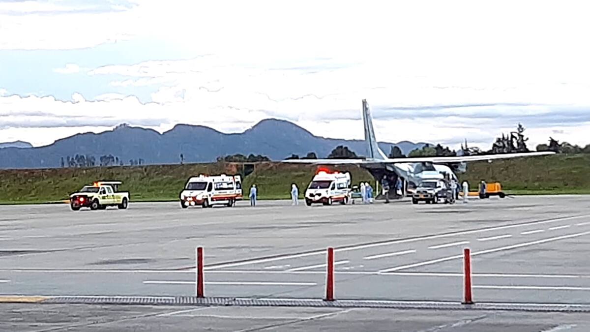 Frente a la posibilidad del contagio de COVID-19 en algunos de los pacientes, señaló el funcionario: 'Son sospechosos de COVID-19, hoy realizaremos pruebas a los siete y quiero informar que está programado un vuelo de la FAC para hoy con cinco a seis pacientes, con pruebas confirmadas de COVID-19'.
