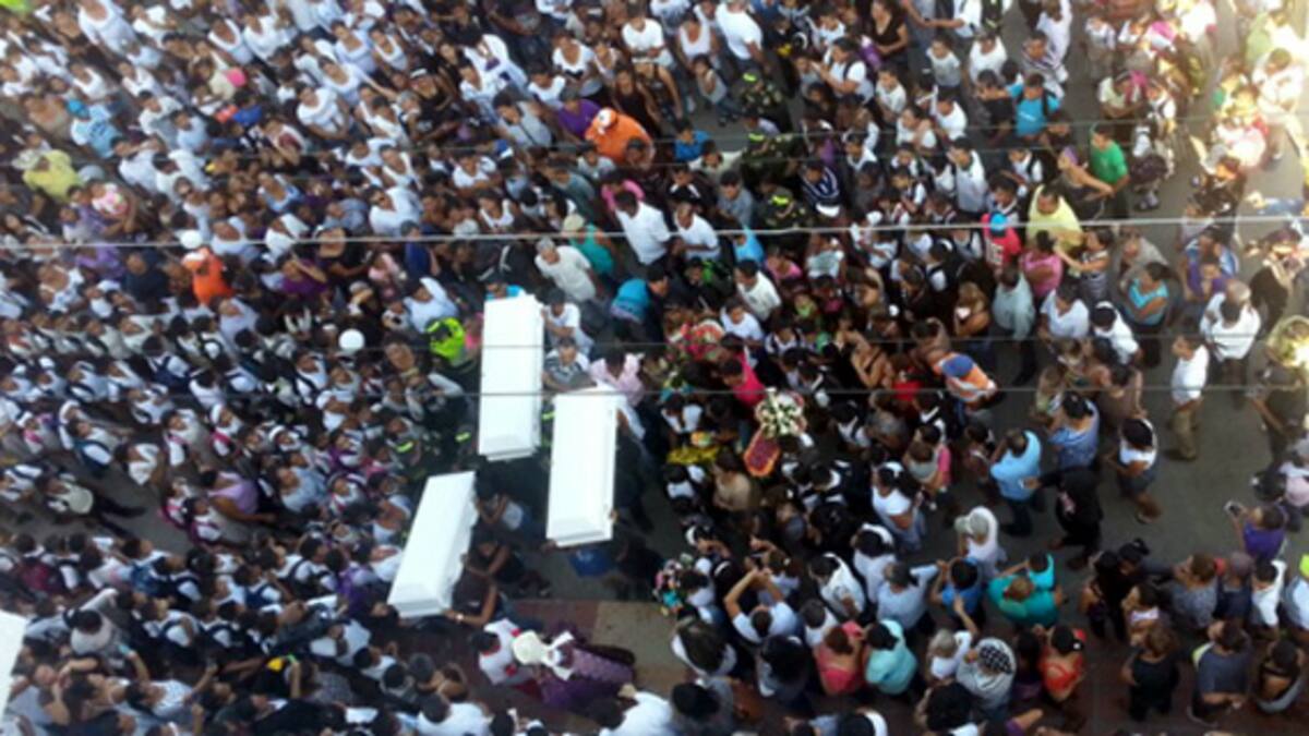 Cuando el reloj dio las 3 de la tarde, se inició el cortejo fúnebre y los tres ataúdes fueron llevados primero a la Iglesia para ser despedidos como ángeles.