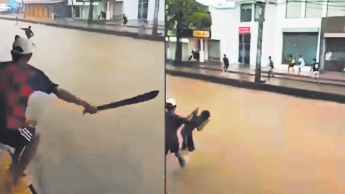 Como si se tratara de un peleador medieval y como si no le importaran las consecuencias, el agresor lanzó un intento de corte con su arma y la víctima, flexionando su cuerpo, por escasos centímetros se salvó de resultar herido de gravedad o, en el peor de los escenarios, sin una extremidad.