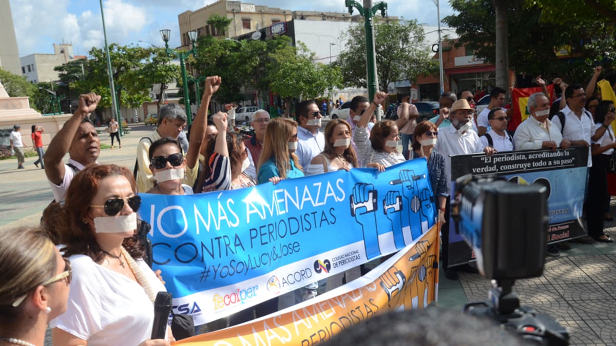 El grupo de periodistas asistieron con tapabocas y pancartas al plantón, en la que se escucharon frases como 'no más amenazas. Yo soy Lucy y José. Exigimos libertad de prensa'.