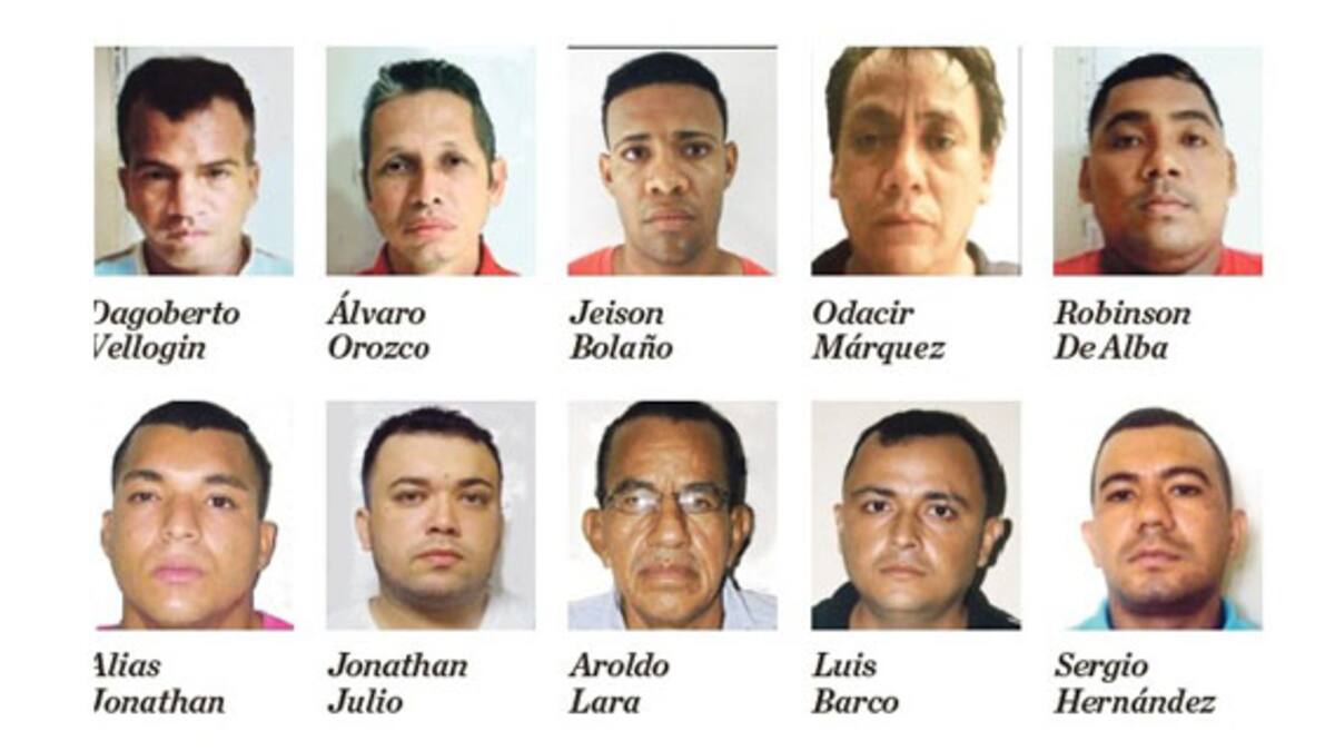 Los capturados son Norberto Orozco Pertuz, alias Beto Zabaleta; Sergio Hernández Castro, alias el Ratón; Álvaro Orozco Alemán, alias el Calvo; Dagoberto Vellogin Padilla, Jeison Bolaño Palmera, alias el Negro; Robinson De Alba Herrera, el Parce; Aroldo Lara Meléndez, el Viejo; Odacir Márquez Vargas, Walter Ortiz Manjarrés y Jaime Rodríguez Moreno, alias Berruga.
