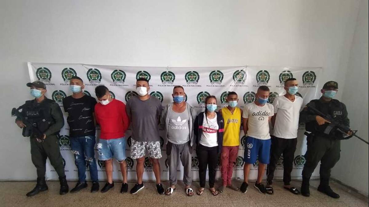 Los capturados fueron identificados por la Policía como Geovany José Flórez Camargo, alias Tres Pelos; Harold Ubaldo Cortez Anaya; Brayan Thomas López González, alias Brayan Dibala; Luis Enrique Flórez Maza, Brayan Alberto Mendoza García, alias Lolo; Jhon Alfonso Ortega Maury, Jesús David Orozco Batista, alias Boqui; y Daniela María Pérez Escalante.