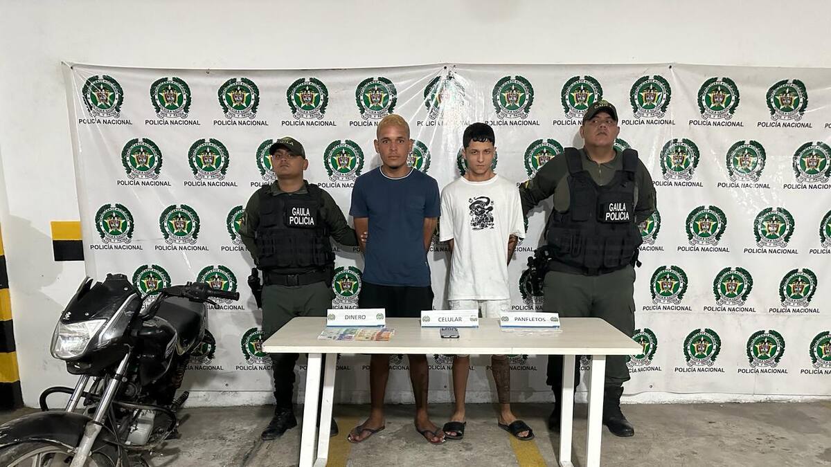 Unidades del grupo Gaula, adscritos a la Policía Metropolitana de Barranquilla, capturaron en flagrancia a dos hombres identificados como Keiner Rincón y Juan Gastel Bondo Cervantes, cuando aparentemente cobraban una cuota extorsiva de cinco millones de pesos.