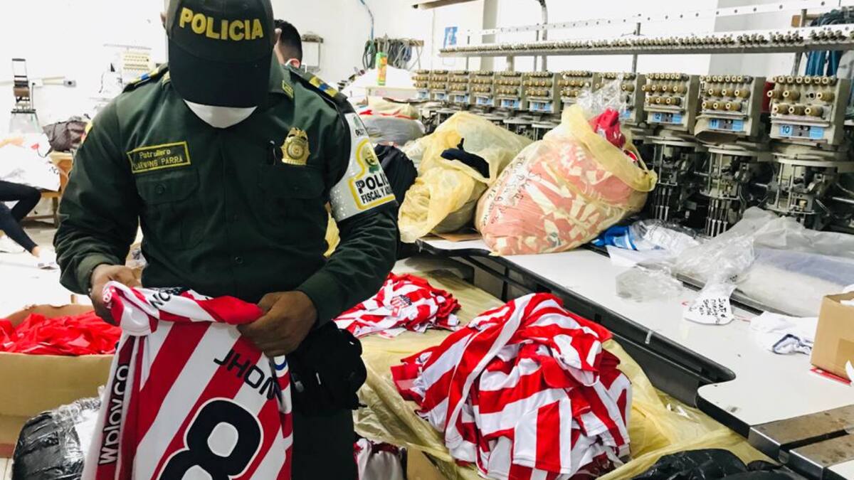 Más de 2.000 camisetas del equipo Junior de Barranquilla fueron decomisadas por la Policía Fiscal y Aduanera en Barranquilla. Estaban siendo confeccionadas en un taller que operaba de manera ilegal.