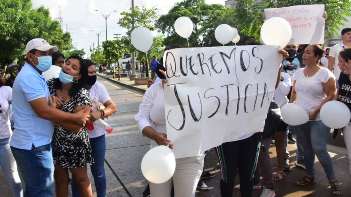 Vestidos con camisetas blancas y globos de igual color, familiares, amigos, vecinos y allegados del mecánico marcharon desde el barrio El Ferry el CAI. 'Queremos justicia, que la muerte de Federico no quede en la impunidad', eran algunas de las frases que se escuchaban en medio de las lágrimas, el dolor y la rabia.