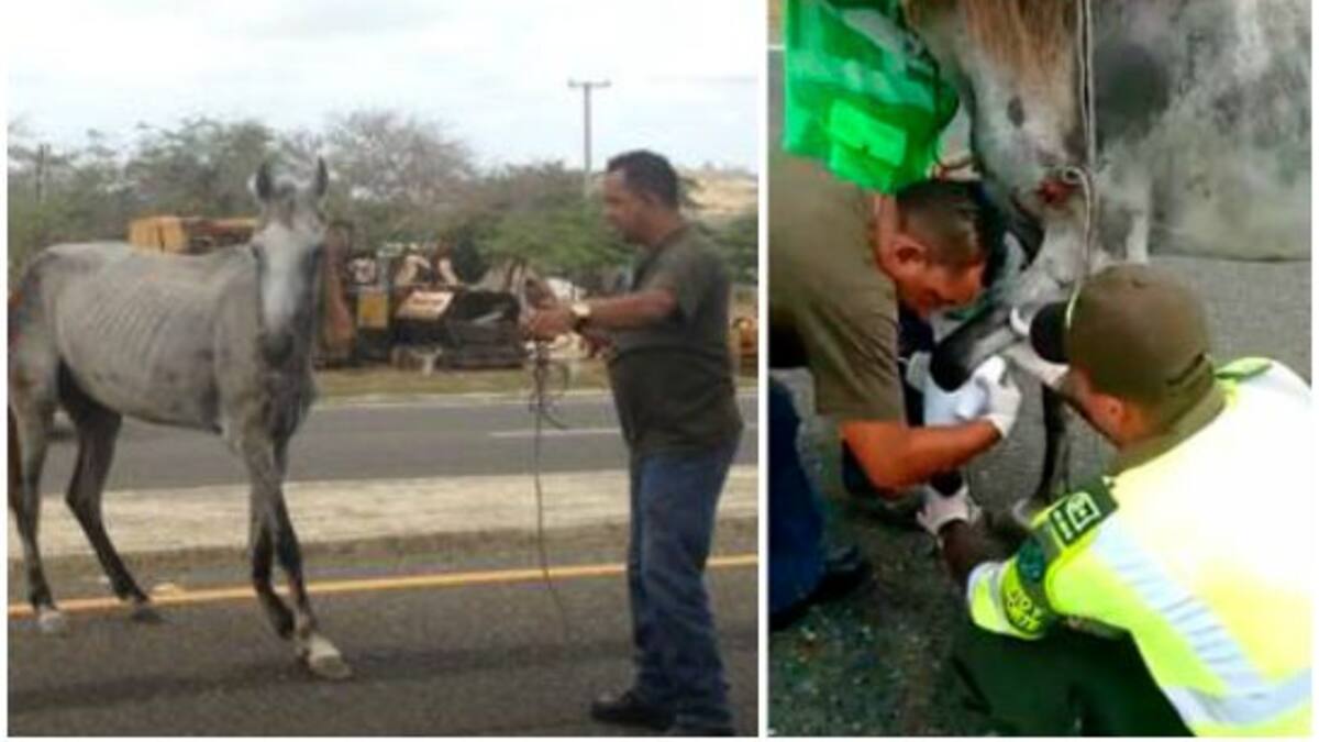 Un caballo en estado de desnutrición fue dejado abandonado en la Vía al Mar, sentido Cartagena Barranquilla, a la altura del kilometro 101. En medio de su desespero, cuentan testigos, se atravesó la vía y un carro lo arrolló y le fracturó una de sus patas.