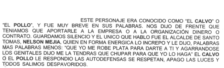 Facsímil de la declaración que detalla la discusión entre Nelson Mejía y el paramilitar alias el Pollo.