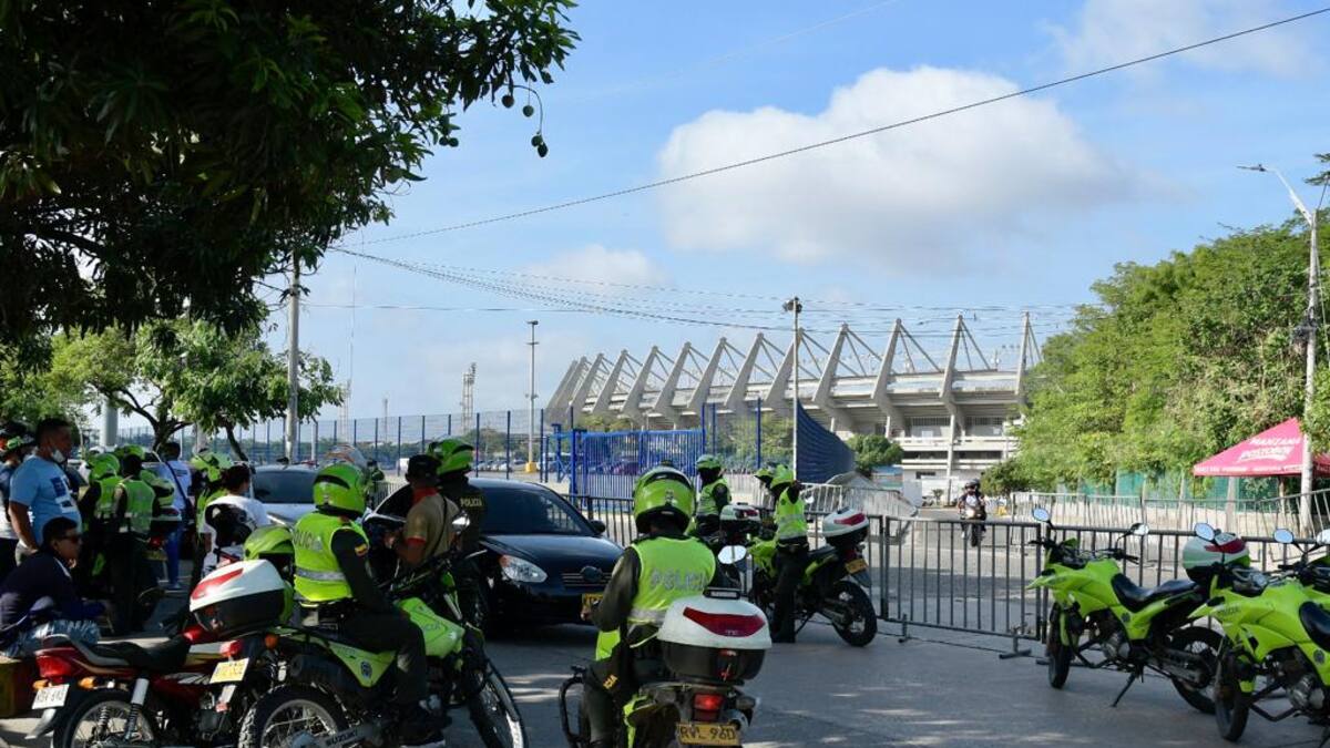 La Policía Metropolitana de Barranquilla custodió la zona con varios cordones de seguridad. Además, desde el aire, el helicóptero ‘Halcón’ estuvo vigilando todo el perímetro.