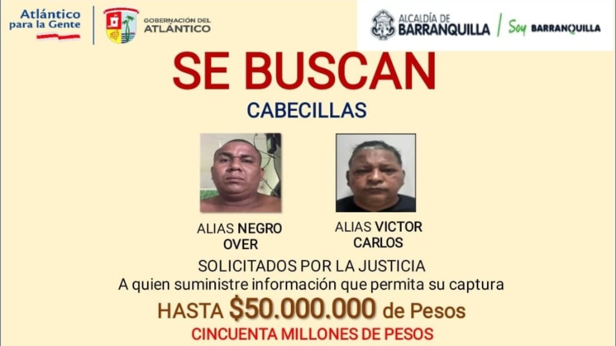 En el cartel también se mencionan los alias Maldad, Kevin Care’ Cortada y Darwin, por quienes las autoridades ofrecen hasta $20 millones. En una tercera fila del cartel figuran los alias de Breiner, Dieguito, Sergio y Caspi.