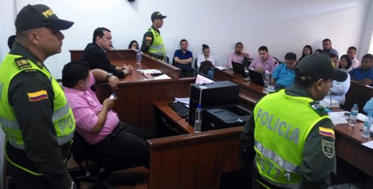 En la sala 13 del Centro de Servicios Judiciales, el juzgado penal ambulante bacrim llevó a cabo la audiencia de solicitud de imposición de medida de aseguramiento contra las siete personas involucradas en la millonaria estafa que hicieron a 370 personas. El juez Ricardo Méndez dirige la audiencia.