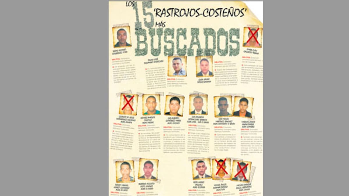 En noviembre pasado la Policía Metropolitana dio a conocer el cartel de los 15 delincuentes más buscados de Barranquilla y el área metropolitana, todos miembros de la banda criminal los Rastrojos Costeños. Un mes después ya han sido capturados cuatro de ellos, por delitos como homicidio, terrorismo, concierto para delinquir, extorsión y uso de menores.