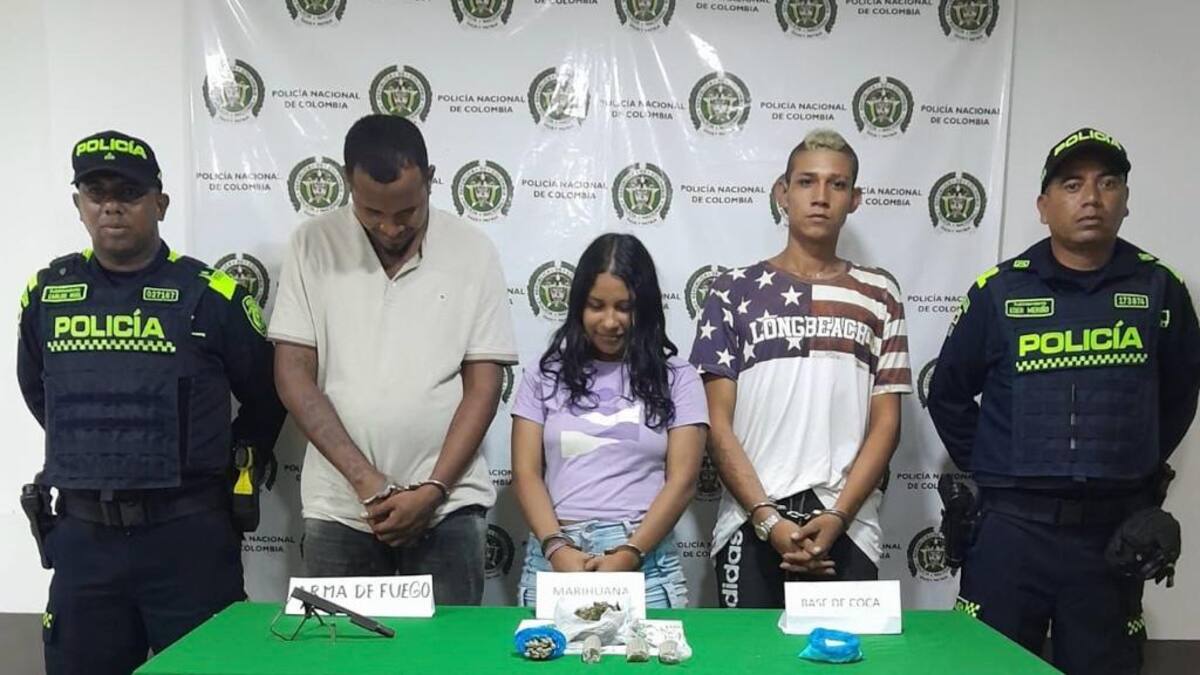 La Policía Atlántico, mediante el Modelo Nacional de Vigilancia Comunitarias por Cuadrantes, realizó la captura de tres personas, con edades de 23, 32 y 24 años respectivamente, por el delito de porte ilegal de armas de fuego y tráfico, fabricación, o porte de estupefaciente, en la calle 20 con carrera 12, en el municipio de Baranoa.