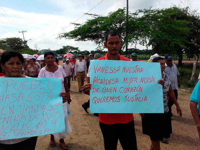 Los habitantes del municipio protestan por el riesgo que corre su mandataria y expresan frases de apoyo a Vanessa Bolívar.